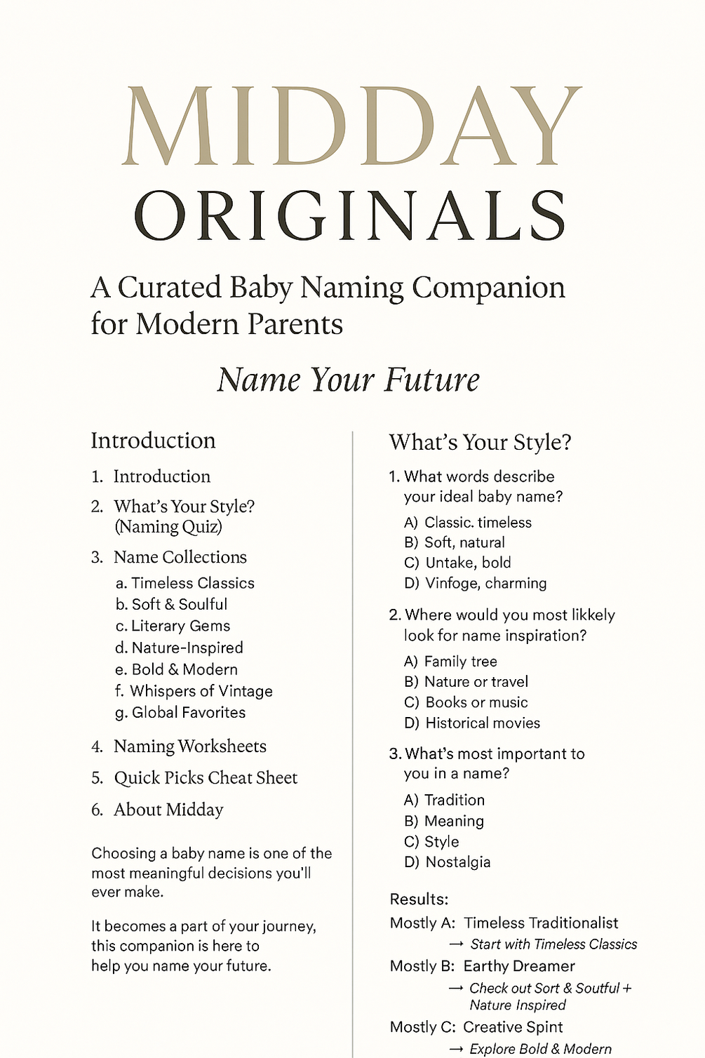 Midday Originals - Curated Baby Naming Template